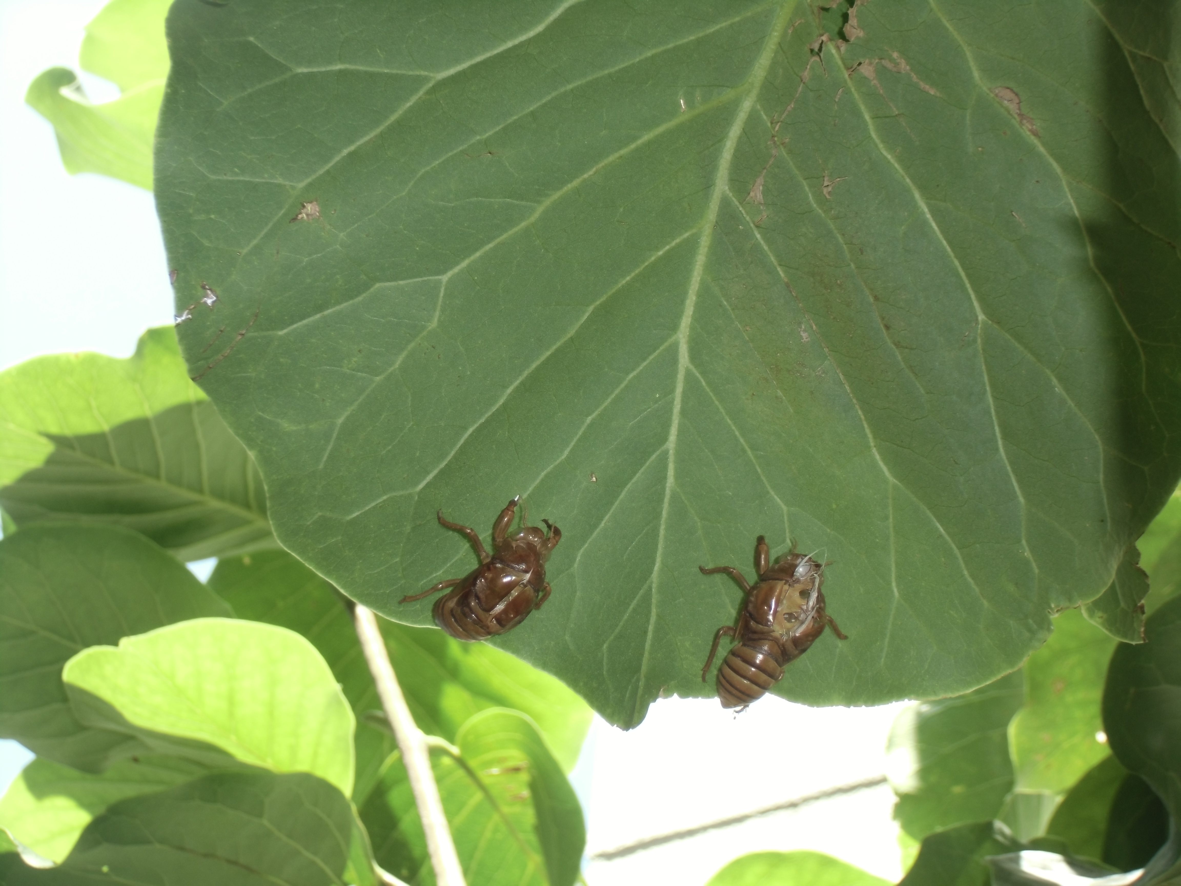 傍に生えている木の葉っぱにはいくつもの抜け殻