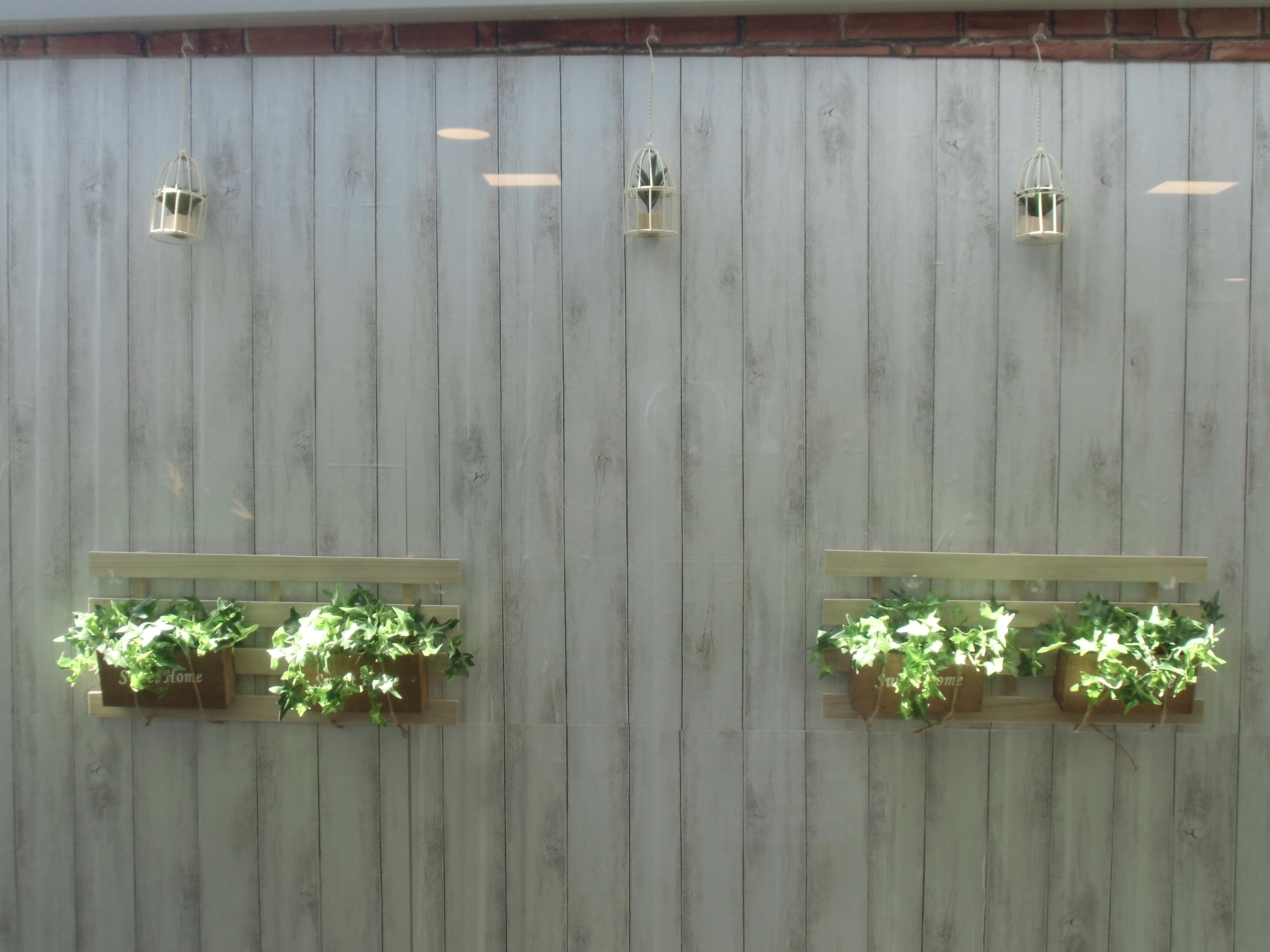 白の木目調のシートを張り、フェイクグリーンで飾ってみました
