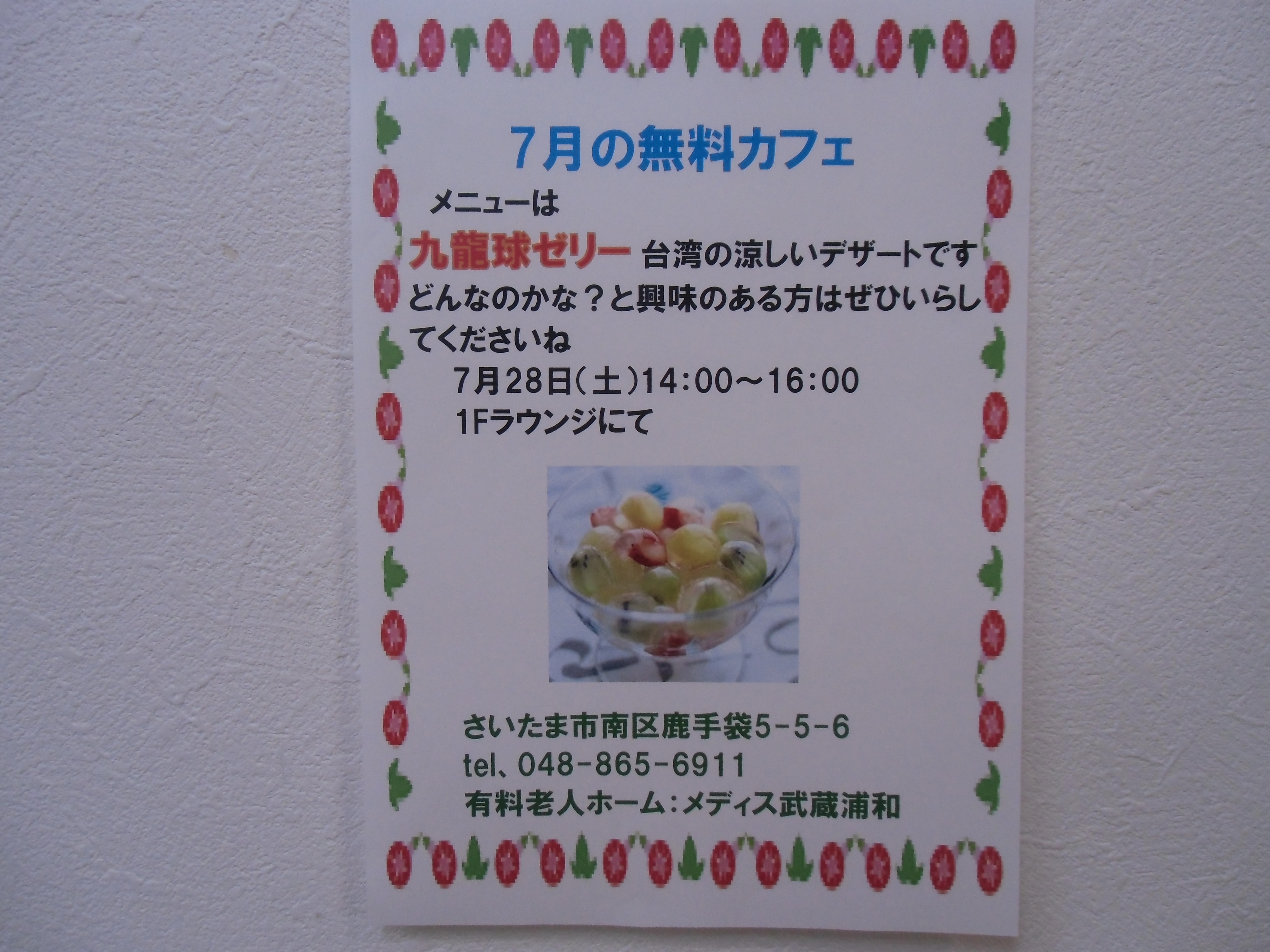 7月28日は無料カフェがありますので遊びに来て下さいね。