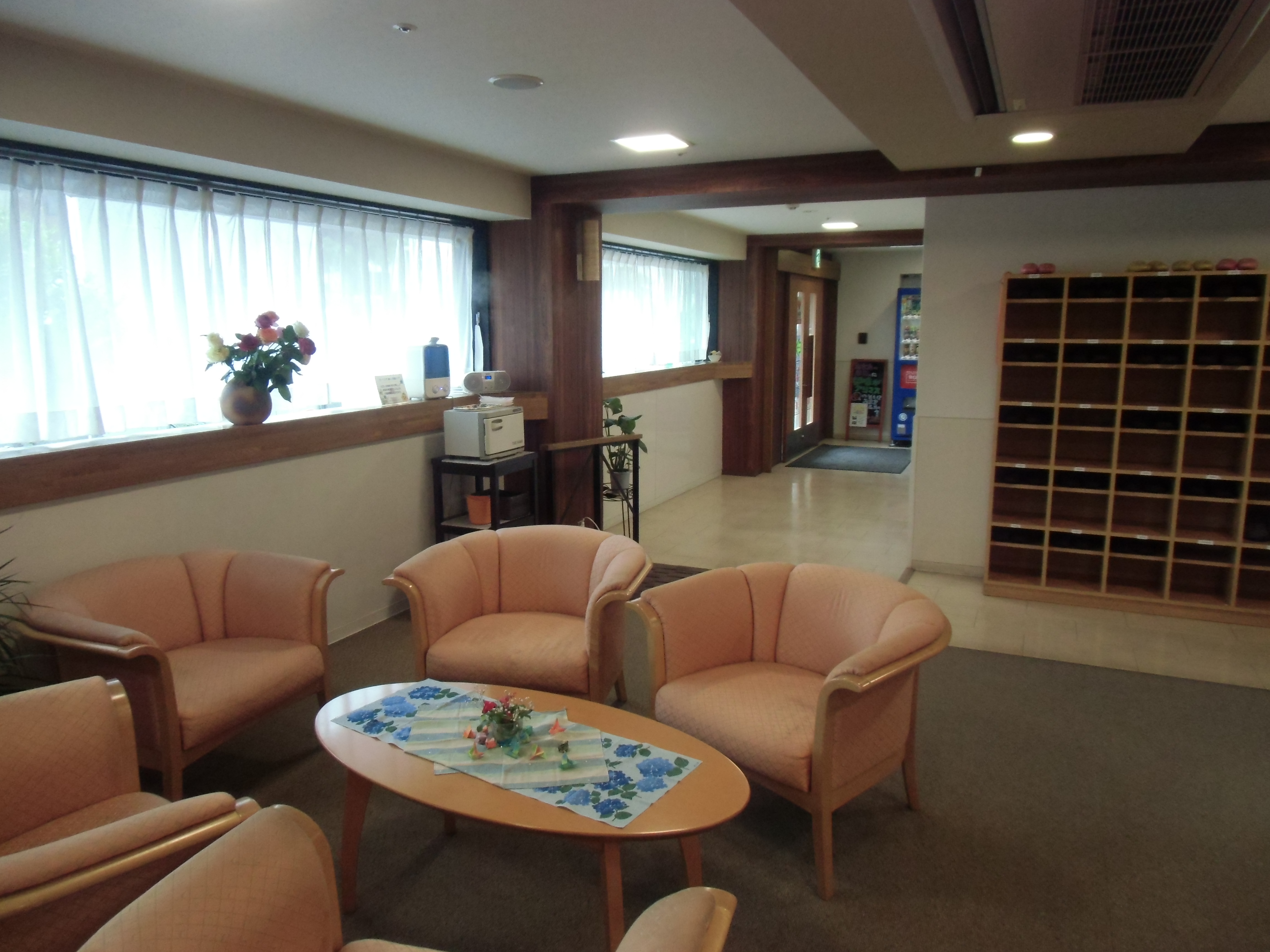 施設のドアを開けると正面事務Nさんのあま~い声で「いらっしゃいませ」とお出迎えです。