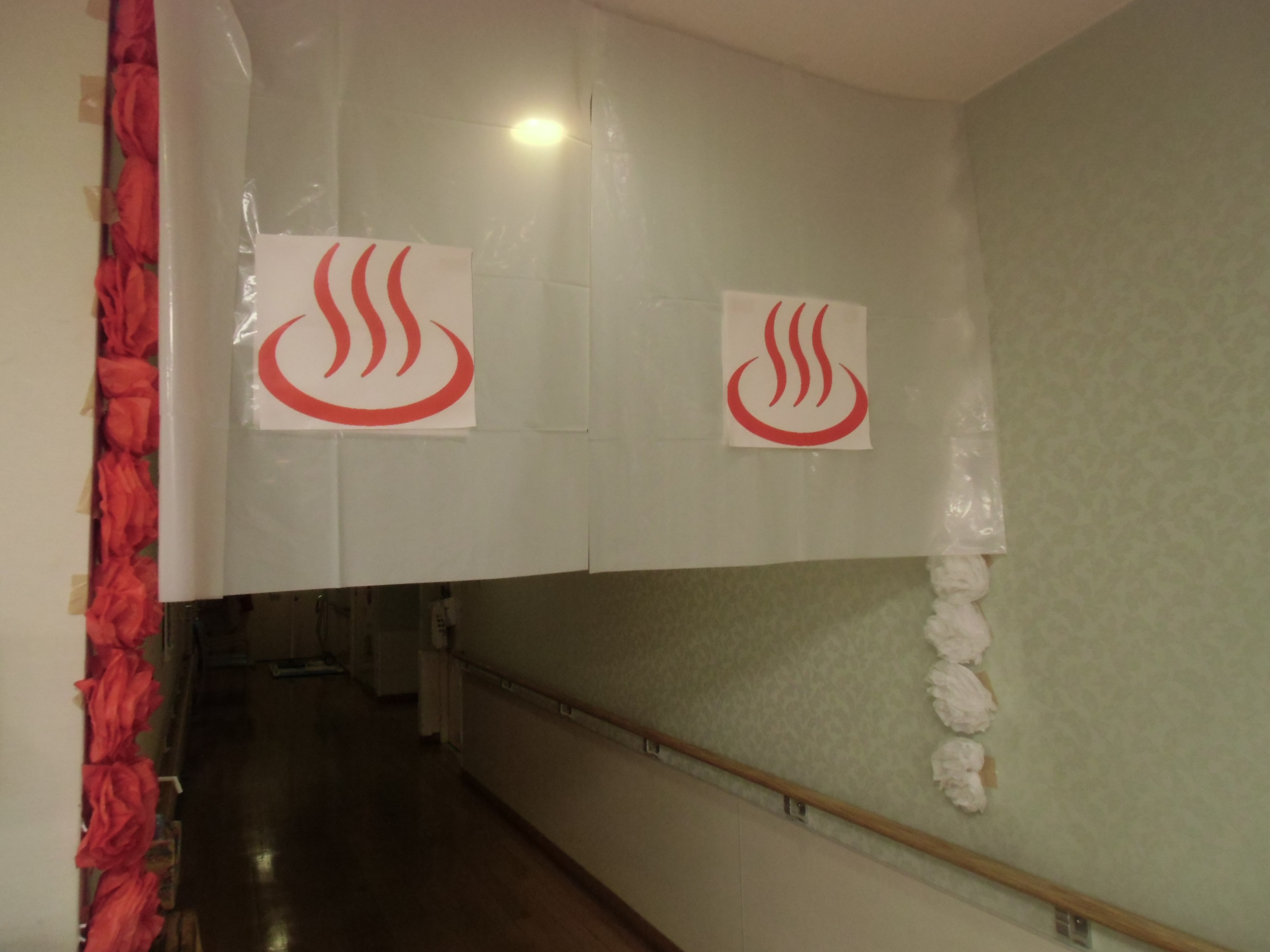 先週は足湯!昼だけど、ほ~ら夜の温泉風!暗幕を張り、照明を落として