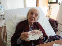 施設の玄関にも桜と鶯が描かれて春がやってきました。
