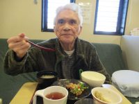 今日のランチは、ご飯・ヒレカツ・焼き茄子・フルーツでした。