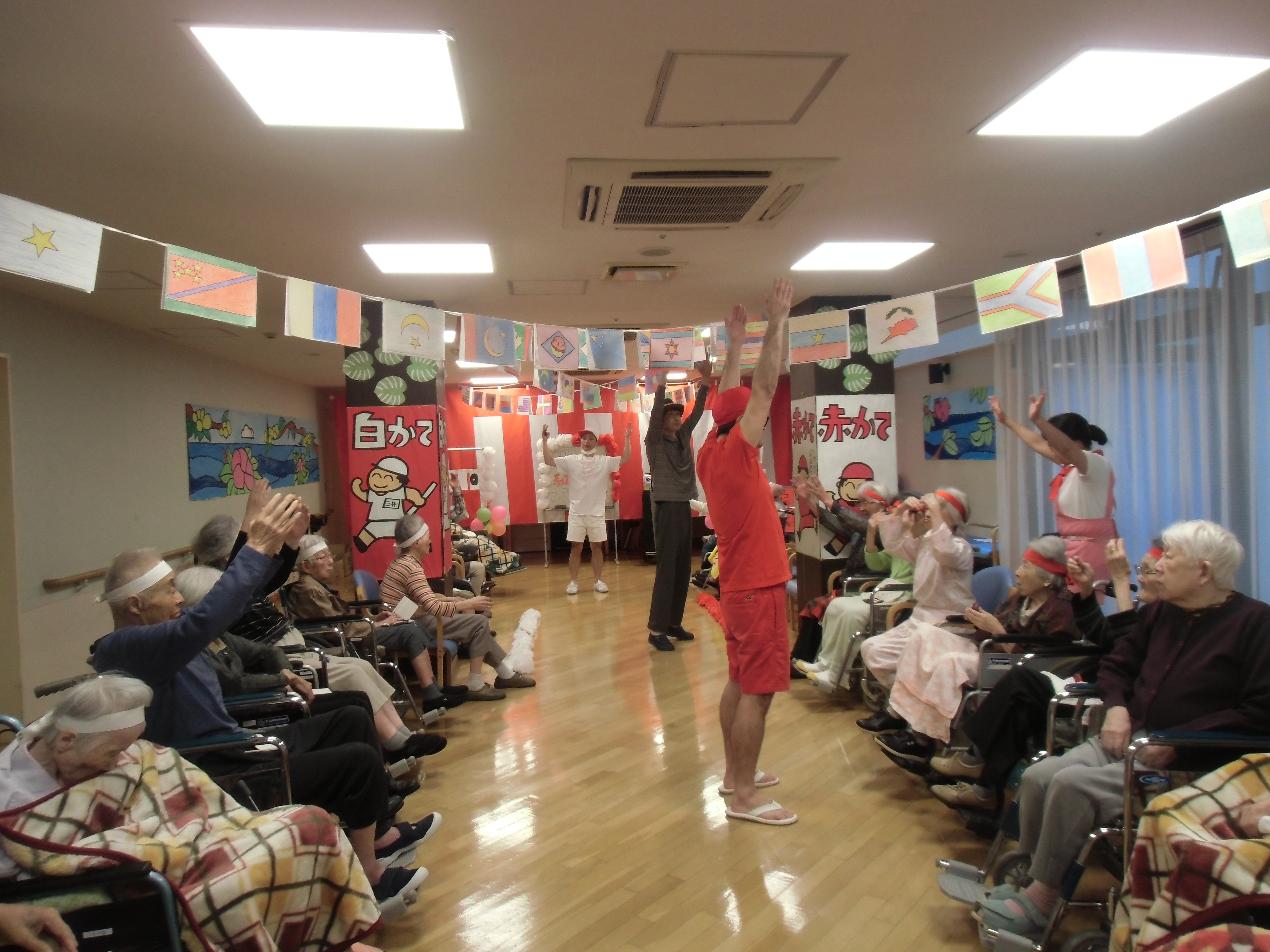 玉入れ、わっか送り、歌合戦など盛りだくさん。