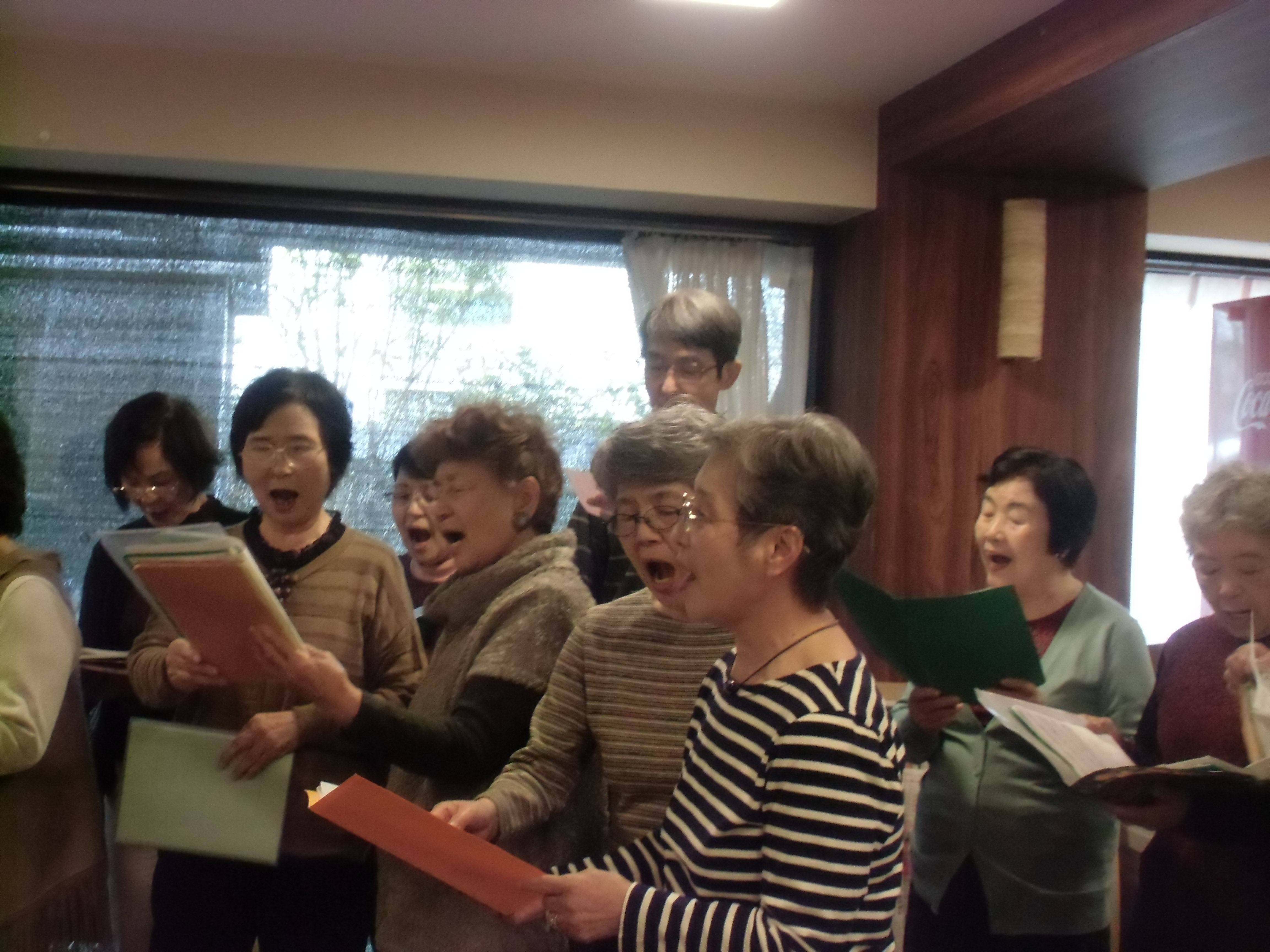 入居者様で、以前コーラスをやっていた方がいて、先日、そのお友達が歌いに来てくださいました。