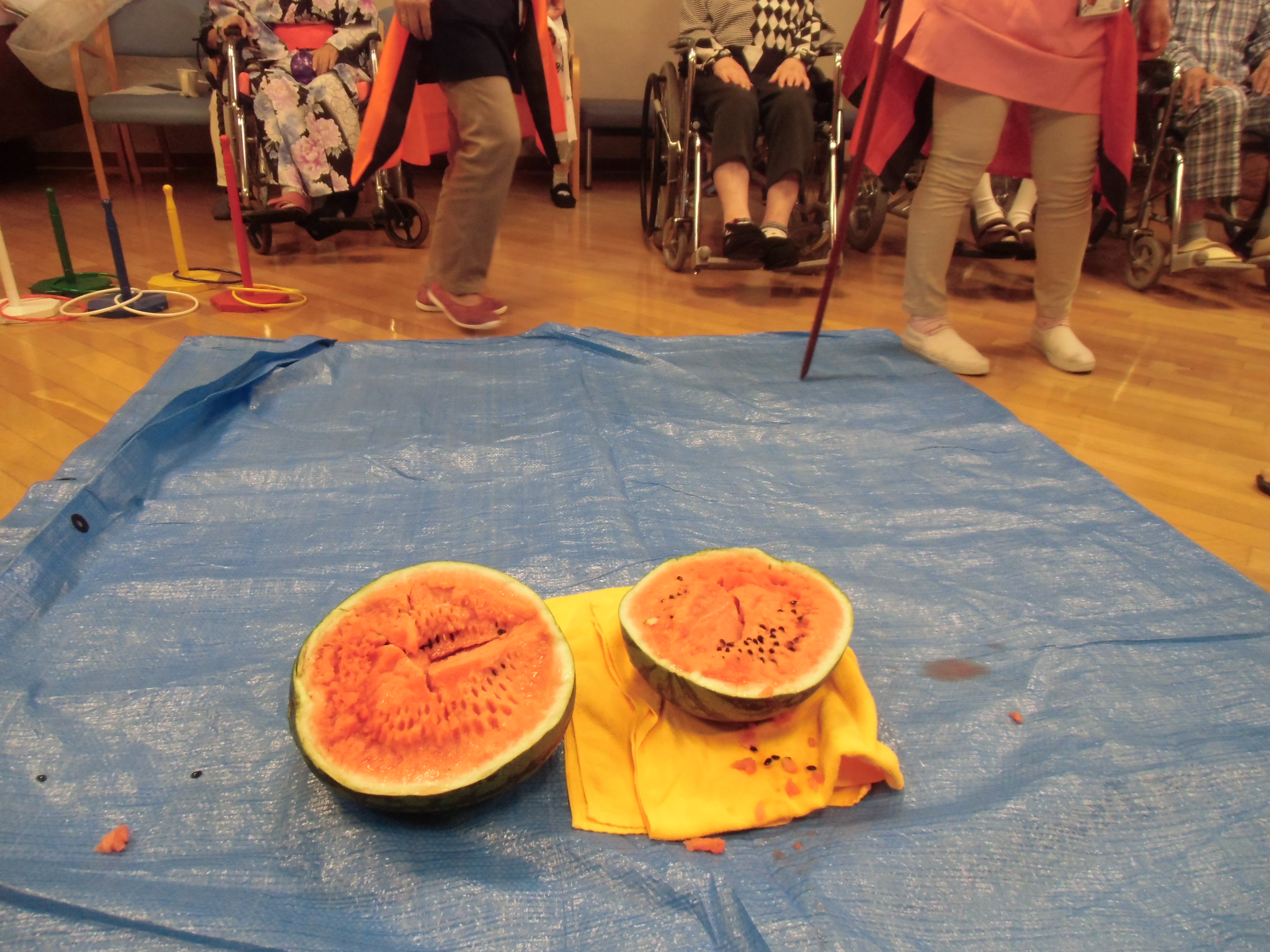 ヨーヨー、輪投げ、たこ焼き、チューペット(ポッキンアイス) スイカ割り!