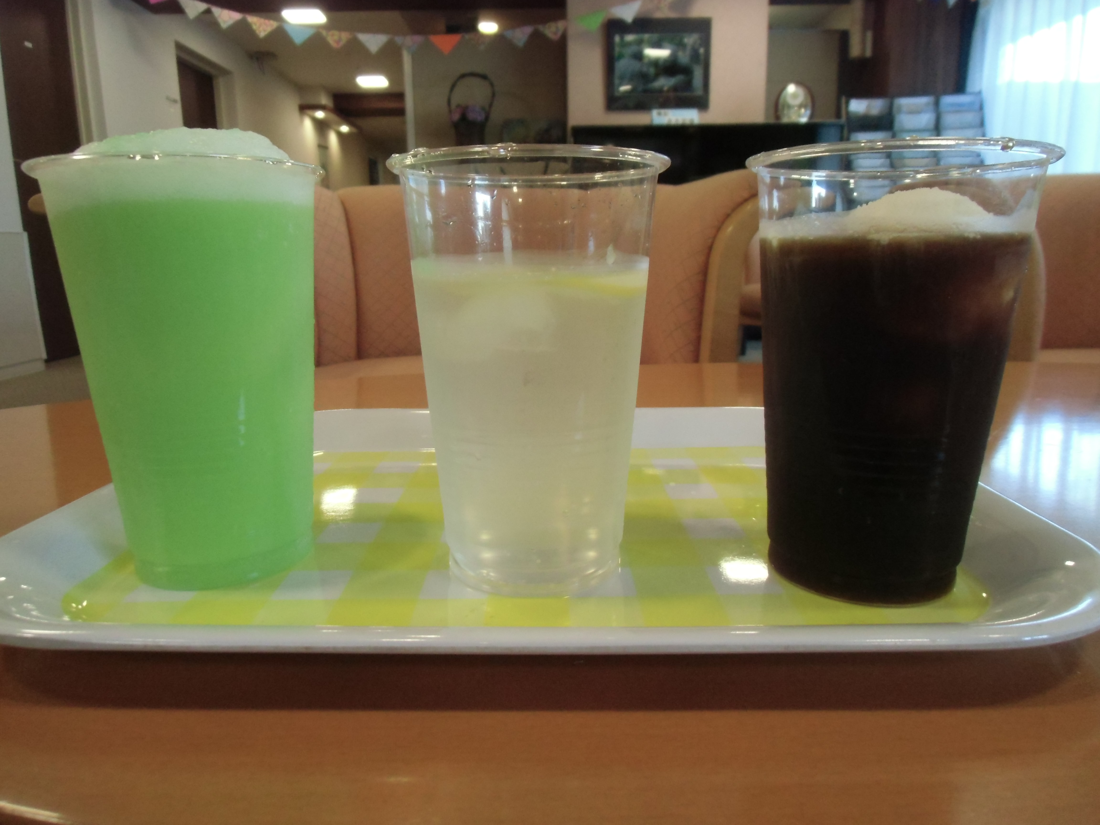 クリームソーダ、レモンスカッシュ、コーヒーフロートの中から選んで召し上がっていただきました。