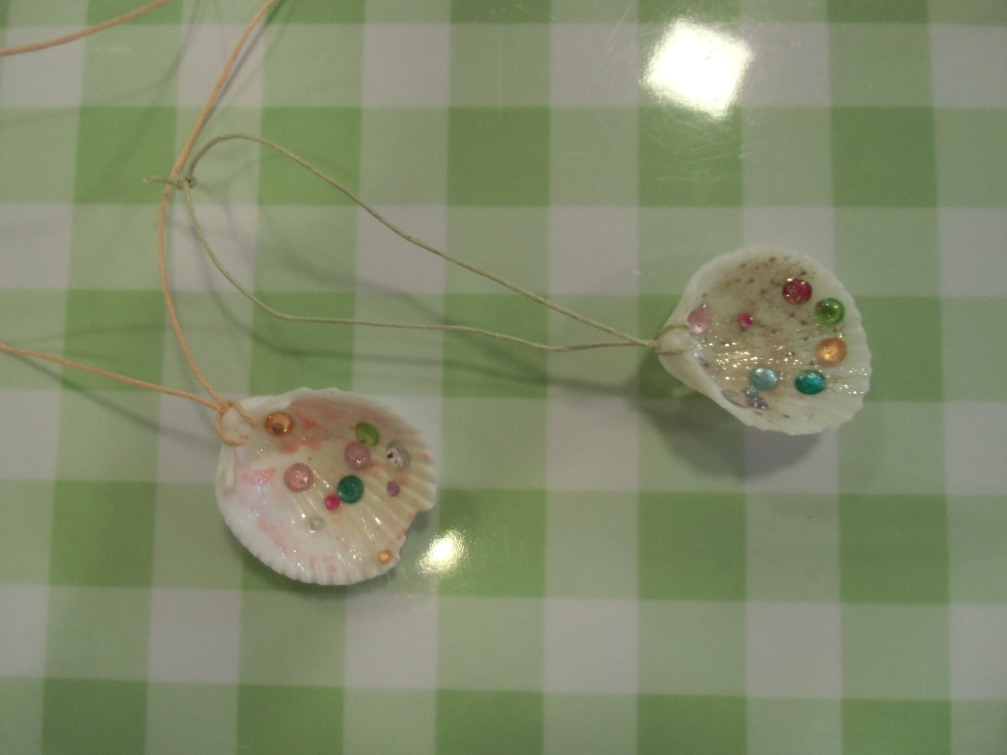 ワークショップで作ったという貝のアクセサリーを持っていた女の子