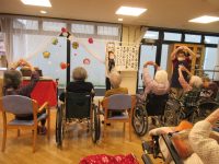 歌の他に、楽器を演奏したり、曲に合わせて体操をしたりしました。