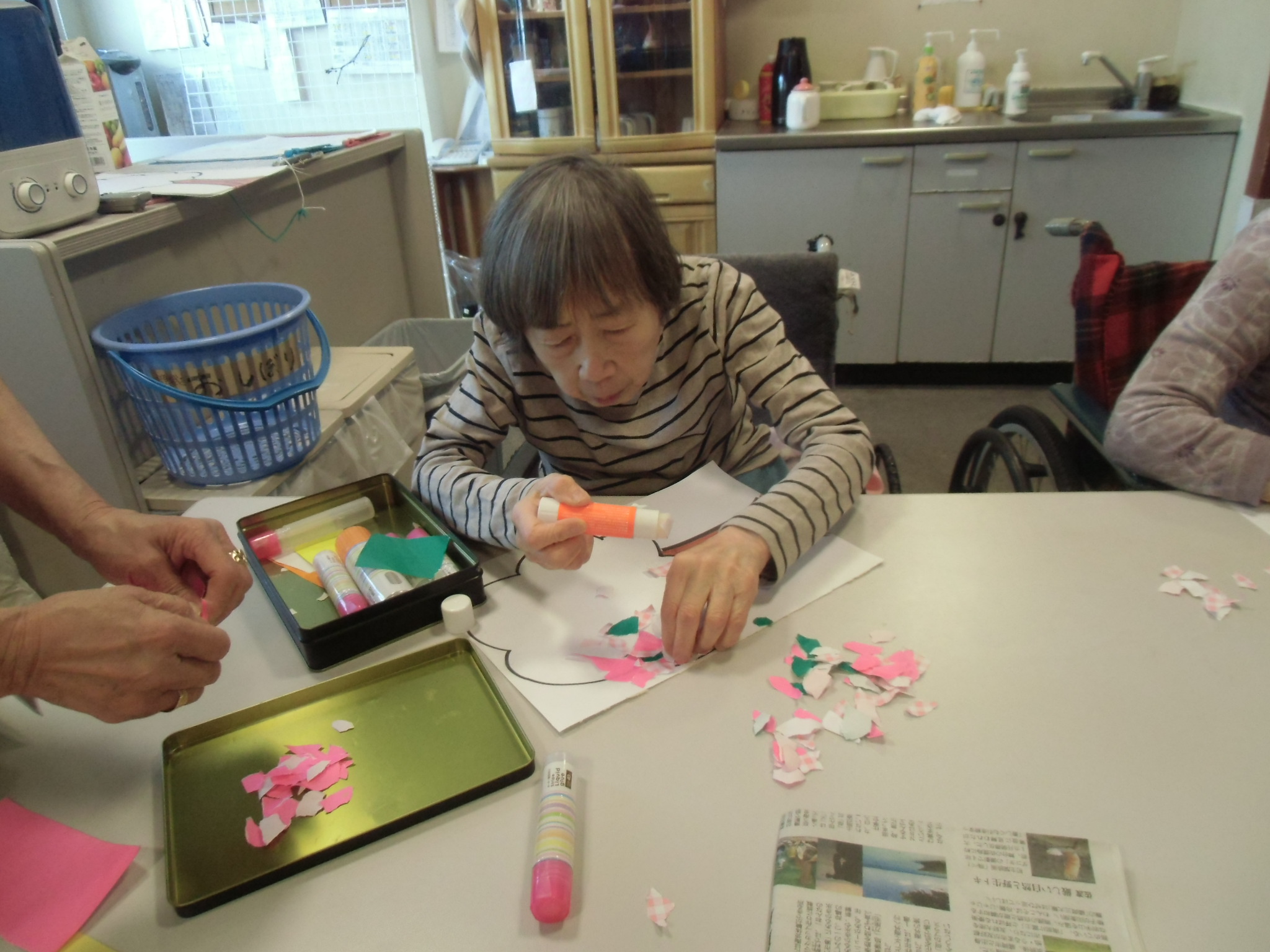 というわけで、あたたか~い室内で桜の木を製作中です。