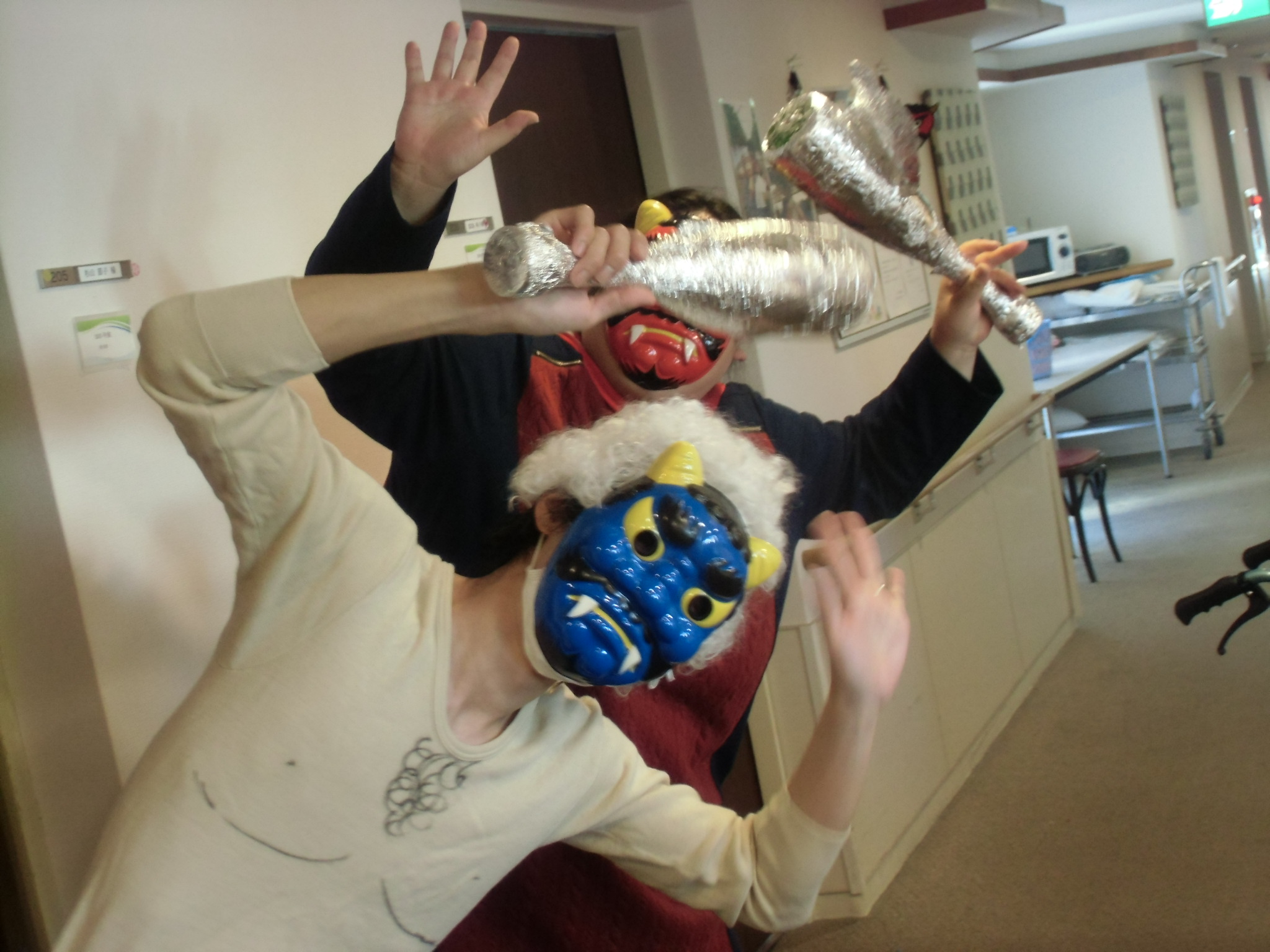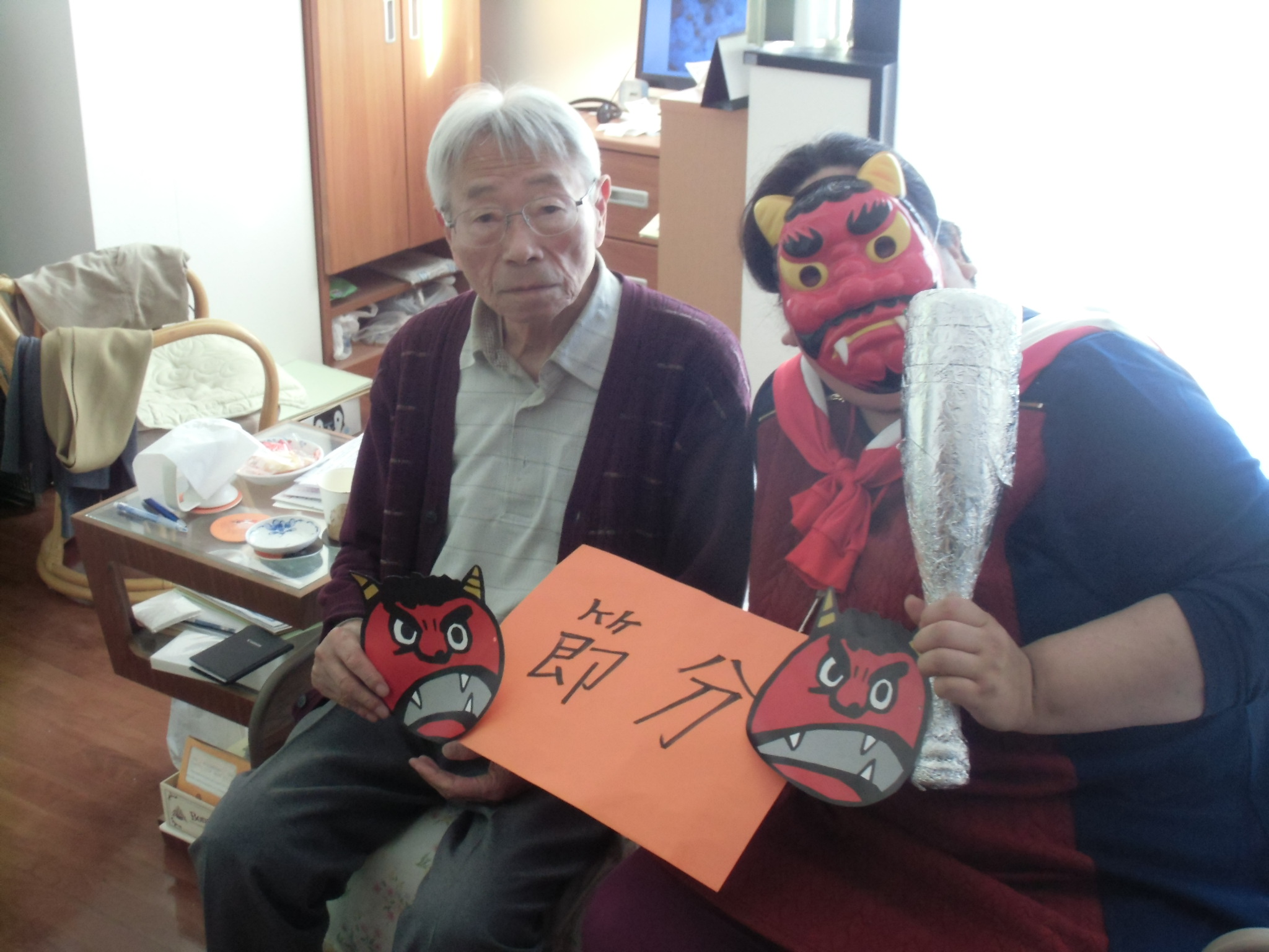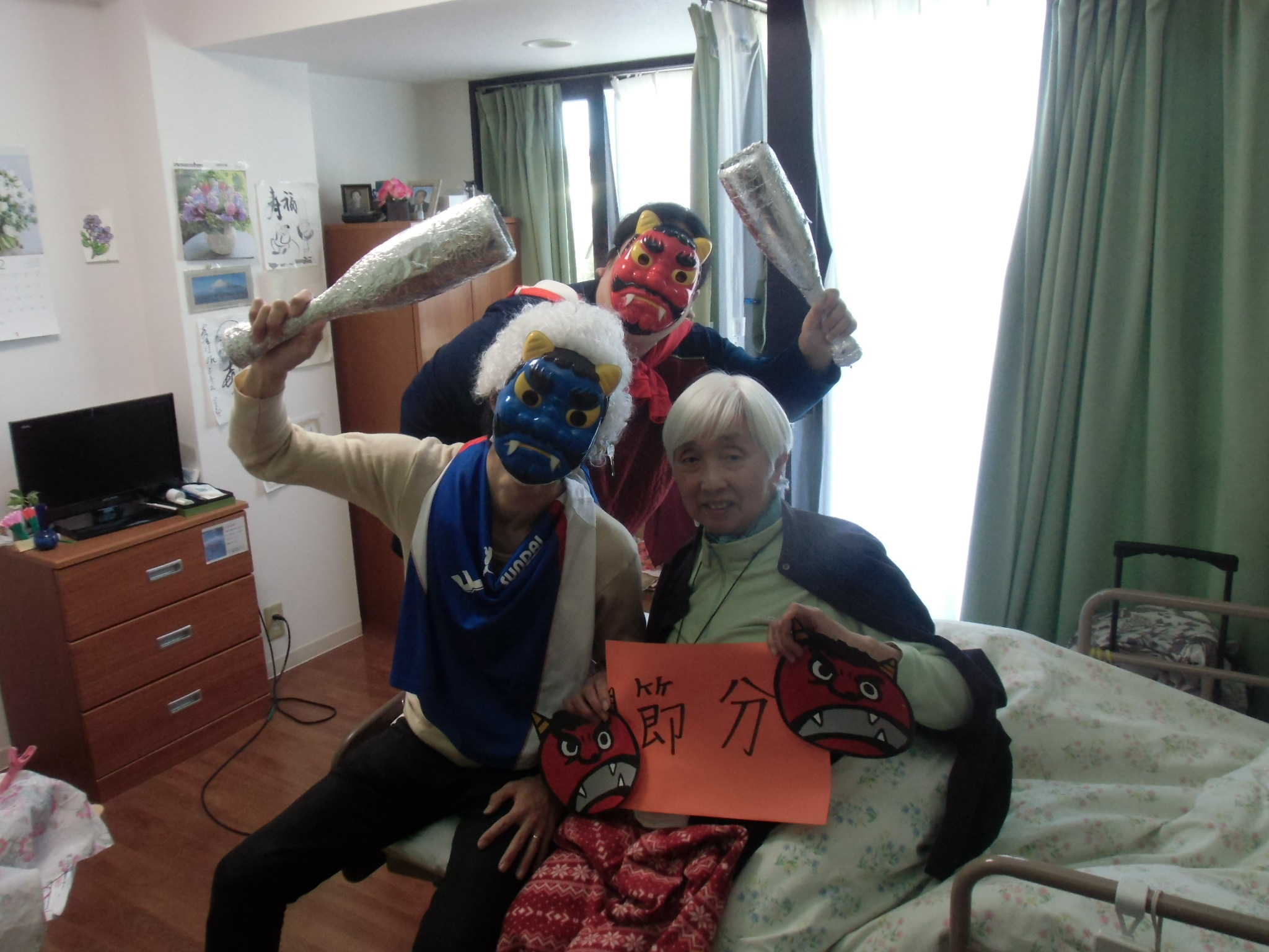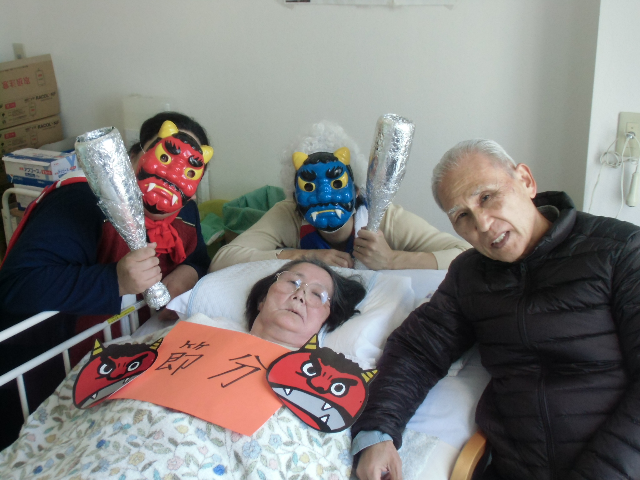 入居者様に豆をぶつけられていましたが、本当はとっても優しい鬼さんたち。