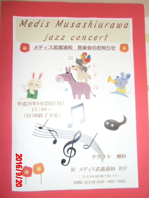 9月25日のジャズコンサートのことは、先日お知らせいたしましたが