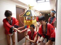 御神輿をかついで、大声で掛け声かけて全館練り歩きました。