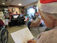 クリスマスの曲では、入居者様は鈴を鳴らし一緒に演奏しました。