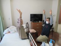 身体をほぐしてもらったり、立ち上がりや歩行の練習を行ったりしています。