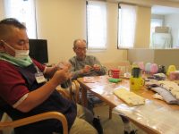 職員と一緒に、夏祭りで使う飾りを作りました。
