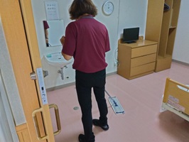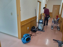 各お部屋を回り、床を磨き上げ、ワックスを掛けてゆきます。
