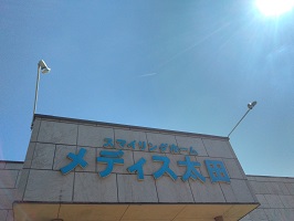 偶然看板の上に飛行機が映り込んでいます。わかるかな???