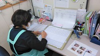 ナースは健康管理室で訪問診療後の記録をつけ・・・
