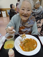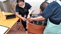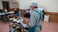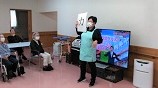 安全に食事が楽しめるよう嚥下体操のお手本を見せるスタッフ。