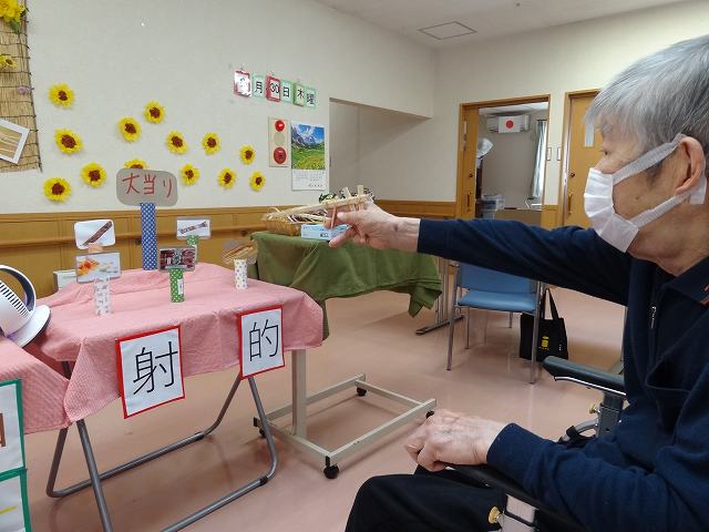 射的ゲームでは的を目掛け皆さん真剣な表情です