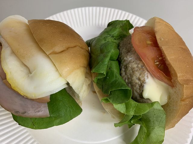 卵焼き、ハンバーグをサンドしたボリューム満点サンド!