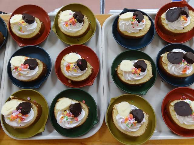 スタッフ手作りのチョコレートをトッピングしたケーキは