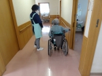 スタッフと一緒に歩行訓練や車椅子の自走など