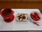 ドーナツ、バナナ、イチゴ、マシュマロをお好みの量をチョコフォンデュして頂きました。