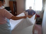 本日は入居者様と一緒にシーツ交換をしました(^o^)