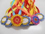 園児へメダルのプレゼントを入居者様と職員で準備をしています。