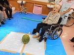 楽しそうに西瓜を叩いて、割ろうと一生懸命頑張りました(^o^)
