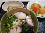昼食に美味しぃ月見蕎麦を頂きました)^o^(