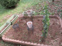 中庭の花壇を秋仕様から冬仕様に植え替え