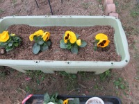 中庭に、パンジーを植えました。