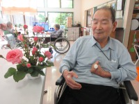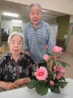 薔薇と入居者様でお写真 パチリ