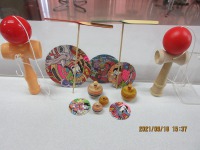 昔なつかしい駒や竹とんぼ、けん玉等を