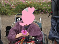 一面にコスモスが綺麗に咲いていて、利用者様にも
