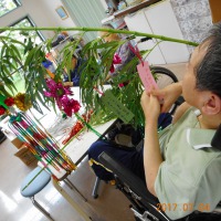 折り紙で形を作ったり、セロハンの飾りを飾ったりと