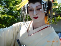 花魁、芸者、獅子などの七変化が目の前で