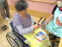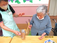 中庭のプランターの水やりを入居者様と一緒にしました。