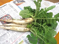 見るからに採りたて泥付き新鮮野菜の大根です。