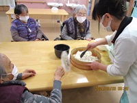 入居者様にもうちわで酢飯を冷ますお手伝いをいてもらいました♪