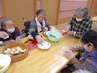 女性陣が手際よく作っているのを、男性入居者様が見守っていました。