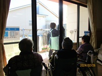 理美容を受けている入居者様と、仲良しの入居者様が見学していました。