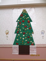 まずはフェルトで作ったクリスマスツリーにオーナメントをつけて、豪華で大人っぽいクリスマスツリーを完成させました。