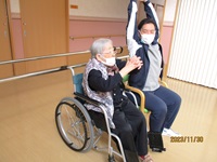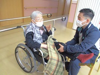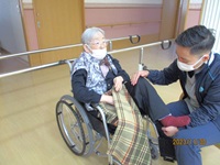 痛くないですかと伺ったら、「ぜーんぜん。」と余裕の表情の入居者様。