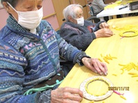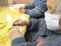 丸い型にボンドでペタペタ乗せているのは、古くなったマカロニです。