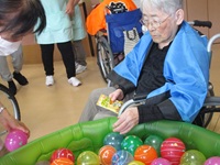 「何色のヨーヨーがいいですか?」と入居者様に聞いて、釣りやすく動かしてくれていましたよ(^^)