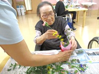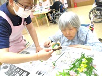 「昔、お花を嗜んでいたことがあるのよ。」という方や、「この年になって初めての体験ができるなんて、嬉しいわ!」と話される入居者様もいらっしゃいましたよ(^^)